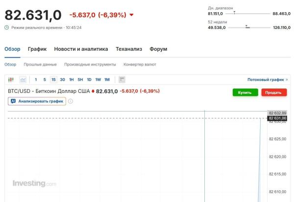 По состоянию на 9:45 по киевскому времени на бирже investing одна монета стоит 82 631 доллар. Таким образом, токен немного подорожал.