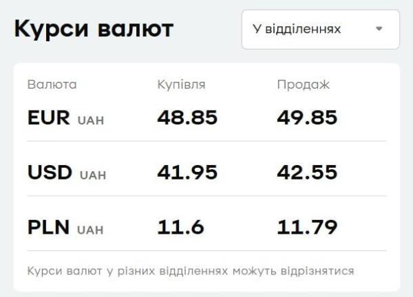Продать американскую валюту в банке можно по курсу 41,85 гривни, а евро — по курсу 48,85 гривни за единицу иностранной валюты.