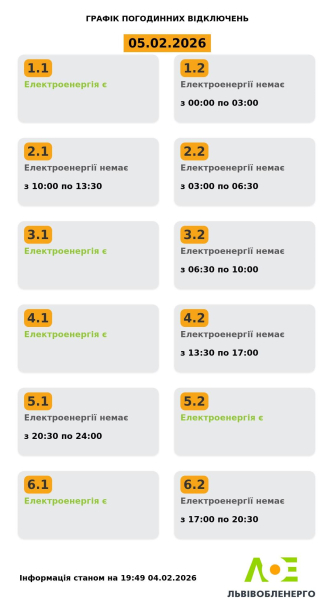 Графики отключений для Львовской области