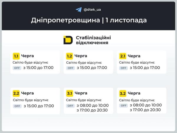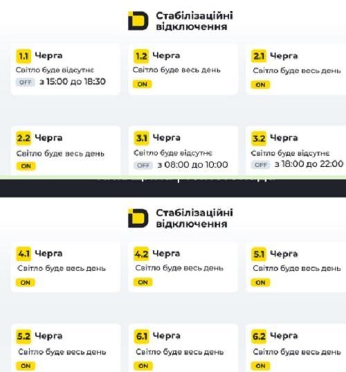Сначала ДТЭК опубликовал схожие графики для Днепропетровщины, запланировав отключение только для нескольких групп. Однако впоследствии они были усилены – без света поочередно будут сидеть все очереди потребителей, а максимальное суммарное время отключения составит 5,5 часов.