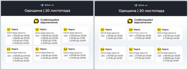 В Одесской области, как и в остальных регионах, предусмотрены отключения для всех очередей потребителей, которые будут осуществляться в течение всех суток в несколько этапов.