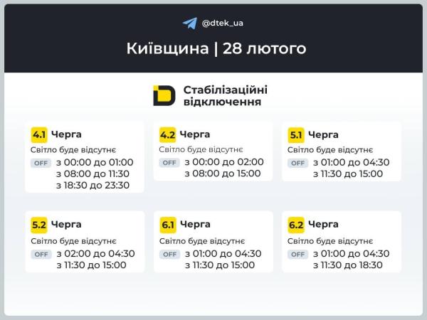 Большинство жителей Киевской области будут отключать от сети дважды в сутки. Для полуочередей 3.1, 3.2 и 4.1 запланировано три этапа отключения. При этом общая продолжительность без света может доходить до 7 часов.