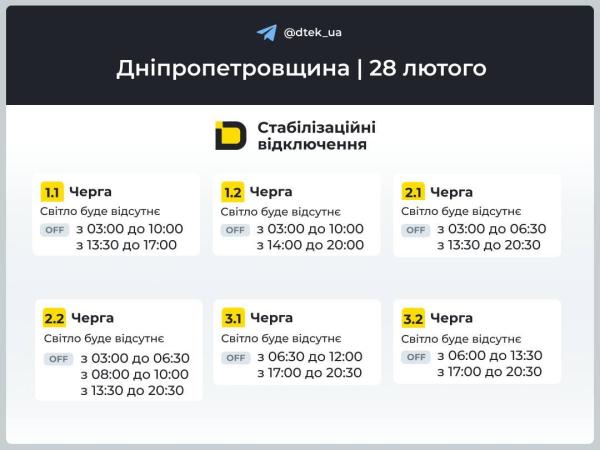 Жителей Днепра и области в субботу разделят поровну по количеству отключений. У одной половины из 6 очередей абонентов свет будут выключать дважды, в другой – трижды в сутки. Одна итерация отключения не будет превышать 7-7,5 часов.