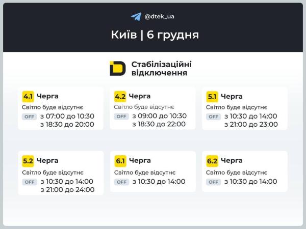 Графики отключения света для Киева