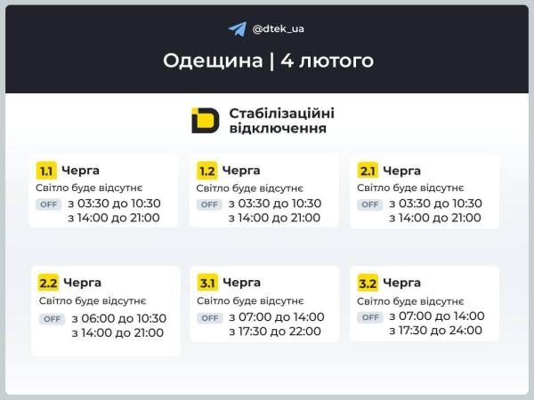 Графики отключения света для Одесской области