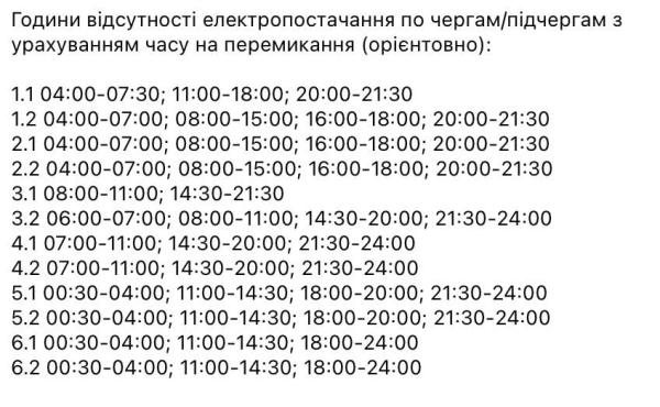 В Полтавской области, по данным «Полтаваоблэнерго», 22 февраля 2026 года электроэнергию будут отключать так:
