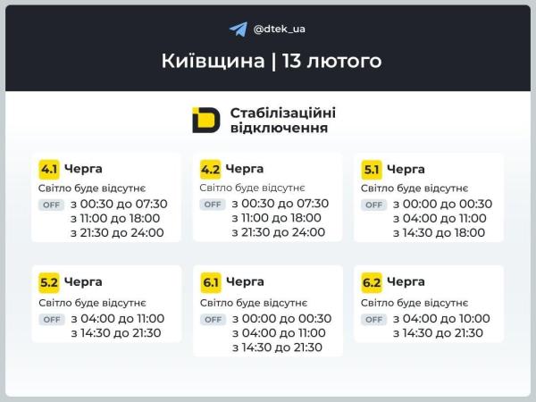 В пятницу, 13 февраля, во всех регионах Украины в течение суток будут действовать графики почасовых отключений электроэнергии. Для промышленных потребителей будут применяться графики ограничения мощности. Как сообщает «Укрэнерго», причина введения ограничений – последствия российских ракетно-дроновых атак на энергообъекты Украины.