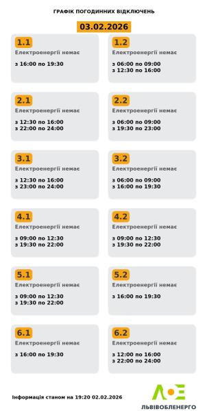 По информации «Львовоблэнерго», 3 февраля жителям Львова и области будут отключать свет 1-2 раза в сутки. В зависимости от очереди потребители будут сидеть без света от 3,5 до 6,5 часов.