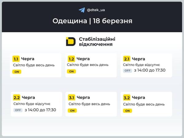 При этом в ДТЭК напомнили, что в Одессе графики отключений не применяются.