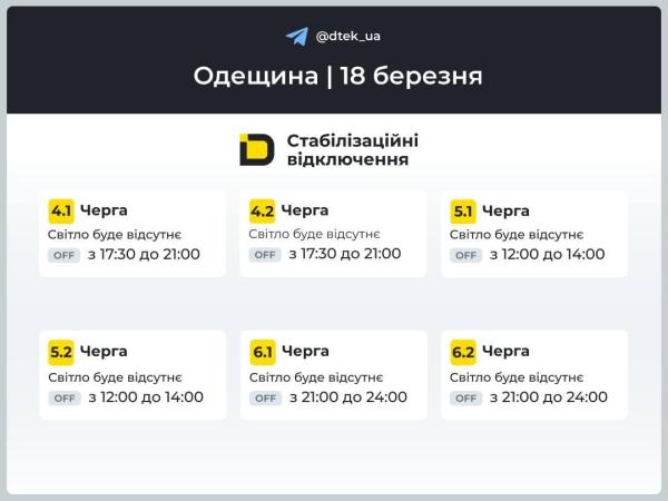 График отключения света — Одесская область