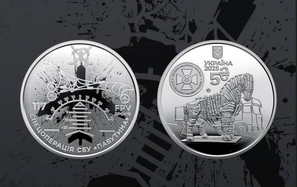Национальный банк Украины выпустил памятную монету, посвященную спецоперации «Паутинаˮ, которую Служба безопасности Украины провела в глубоком тылу врага.