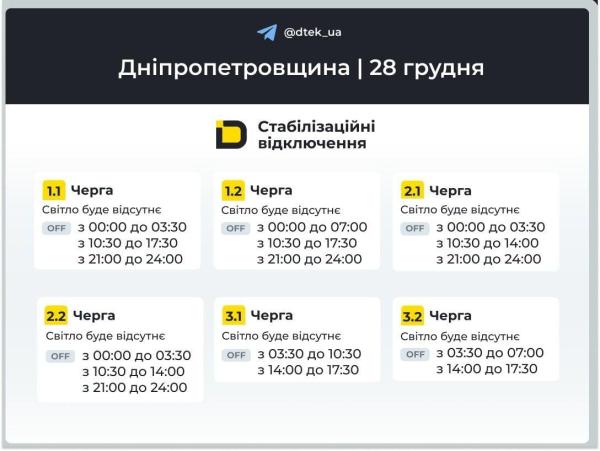 Для жителей Днепропетровщины ДТЭК составил еще более жесткий график веерных отключений, чем для столичного региона. Здесь совокупно света не будет от 7 часов (3.2 очередь) до 16,5 часов (1.2 очередь).
