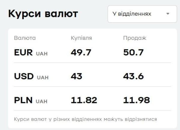 Продать американскую валюту в банке можно по курсу 43,00 гривни, а евро — по курсу 49,70 гривни за единицу иностранной валюты.