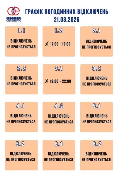 В компании добавили, что в соответствии с распоряжением НЭК «Укрэнерго» для промышленности и бизнеса Черкасской области 21 марта с 08:00 до 22:00 будут применяться графики ограничения мощности.