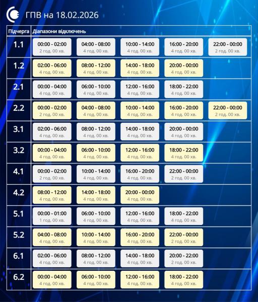 Как сообщает «Сумыоблэнерго», завтра, 19 февраля, будут действовать графики почасовых отключений в соответствии с объемами, доказанными командой НЭК «Укрэнерго». В течение суток графики отключения электроэнергии будут применяться во всех группах потребителей региона.