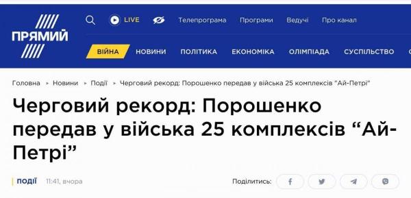 «О патологической жадности Порошенко ходят легенды. Причем это качество с годами приобрело у «гетмана» некую гиперболизированную форму. Свидетельством этому стала новость от самого «сивочолого» о том, что он поставил рекорд и, якобы, передал на фронт аж 25 РЭБ. Ну все, думаешь, исправился политик. Хоть что-то впервые в жизни купил за собственные деньги. Но нет», — написал Сталкер.