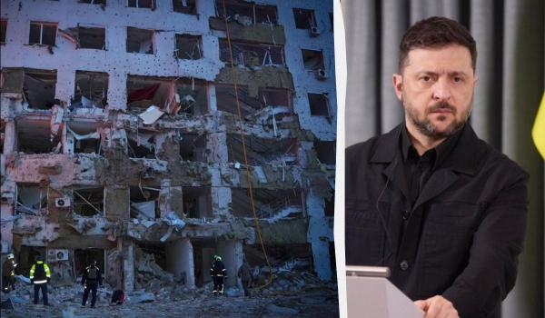 Президент отметил, что в результате российского нападения есть попадания и повреждения обычных домов.