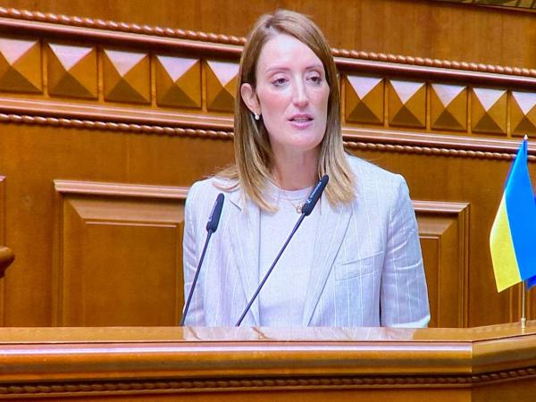 Председатель Европарламента добавила, что они продолжают давление на Россию и ожидают принятия 19-го пакета санкций.