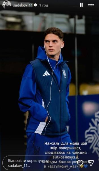 Полузащитник сборной Украины Георгий Судаков не сыграет в матче квалификации к чемпионату мира-2026 против Азербайджана. Об этом он сообщил на своей странице в Instagram.