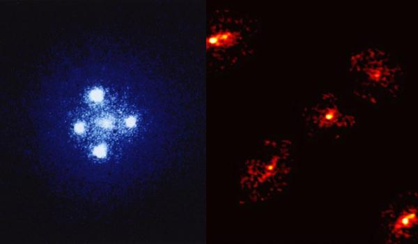 Известно, что исследователи изучали отдаленную пылевую галактику под названием HerS-3. Используя NOEMA и Атакамский большой миллиметровый/субмиллиметровый массив (ALMA) в Чили, они увидели, что свет от HerS-3 разделился на пять, а не на четыре изображения. Сперва ученые подумали, что это может быть ошибка данных, однако пятое изображение никуда не исчезало.