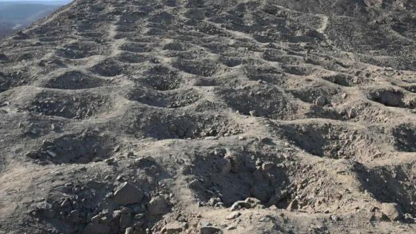 На склоне узкого хребта археологи насчитали около 5200 ям, расположенных в упорядоченных секциях. Они образуют длинную полосу протяженностью почти полтора километра.
