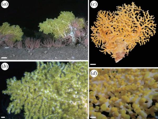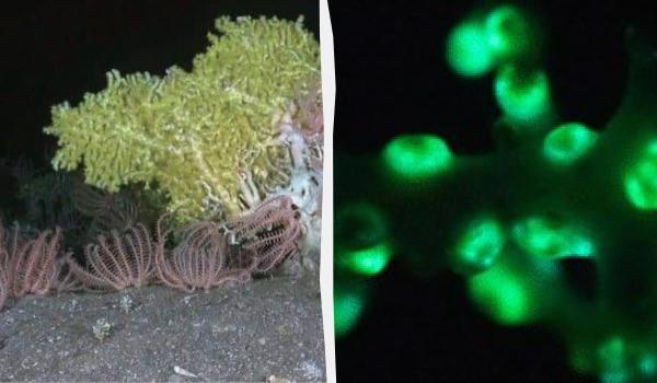 На глубине 385 метров подводный аппарат обнаружил колонии ценных кораллов рода Pleurocorallium. К этим кораллам были прикреплены скопления небольшого ярко-желтого организма, ранее не описанного в научных исследованиях. Когда манипулятор аппарата коснулся полипов, они отреагировали не постоянным свечением, а отчетливым мигающим зеленым светом. Остальная соединительная ткань между полипами оставалась темной, ограничивая биолюминесценцию исключительно живыми щупальцами.