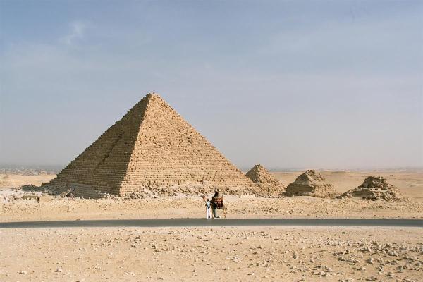 Пирамида Менкаура, самая маленькая из трех главных пирамид Гизы, построена около 2490-2472 годов до н.э. для последнего фараона IV династии. Она известна тем, что ее внешняя гранитная отделка так и не была завершена — лишь семь рядов сохранились у основания.