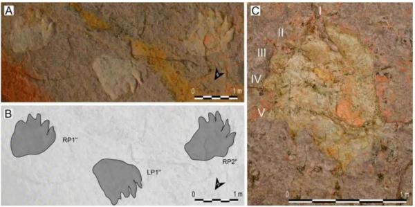 Некоторые из отпечатков достигают 1,25 метра в длину. Это указывает на то, что их оставили огромные травоядные динозавры-зауроподы, в частности представители группы титанозавроподобных.