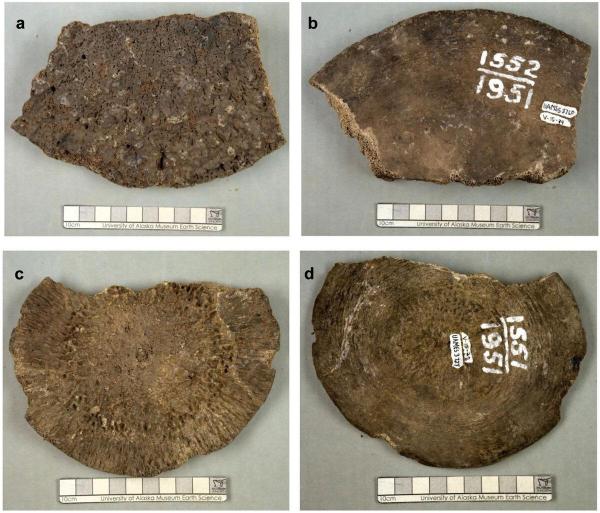 В 1950-х годах в золотых рудниках Доум-Крик на Алясе, примерно в 250 милях от ближайшего побережья, были обнаружены окаменелости. Первоначально кости были обозначены как окаменелости мамонтов, что было разумным предположением, учитывая распространенность останков мамонтов по всей Северной Америке. Окаменелости десятилетиями хранились в архивах Музея Севера Университета Аляски.