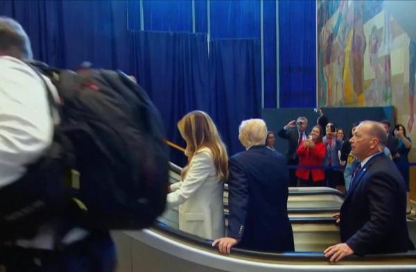 На видео видно, как эскалатор резко остановился, как только Трамп и Мелания ступили на него. После короткой паузы первая леди продолжила подниматься. Президент прибыл в ООН для выступления перед Генеральной Ассамблеей, где неоднократно упоминал инцидент:
