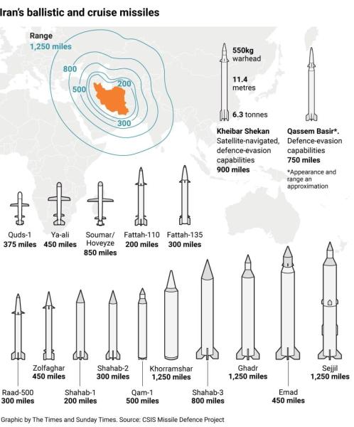 Отмечается, что арсенал включает гиперзвуковые ракеты Fattah 1 и 2, которые, по утверждению Ирана, маневренны в полете и могут нести боеголовку весом до 450 кг. Более крупная ракета Emad, которая, по заявленной информации, имеет дальность более 1000 км, может нести боеголовку весом почти 800 кг.