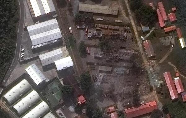 Спутниковые снимки подтверждают полное уничтожение складов и пунктов охраны на въездах на базу. Также кадры подтвердили уничтожение военной техники, автотранспорта и средств противовоздушной обороны (ПВО).