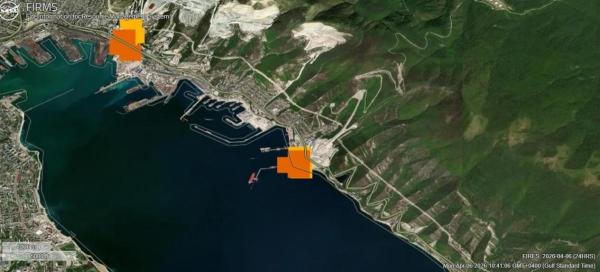 На этих снимках можно увидеть новые очаги возгорания в районе порта Новороссийска, где находится терминал «Шесхарис» компании «Транснефть».