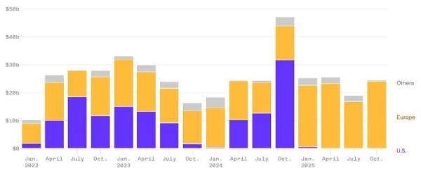 Действительно, согласно оценкам Центра стратегических и международных исследований, по итогам 2025 года европейская поддержка превзошла американскую. Кроме того войска РФ понесли примерно 415 тыс. потерь.