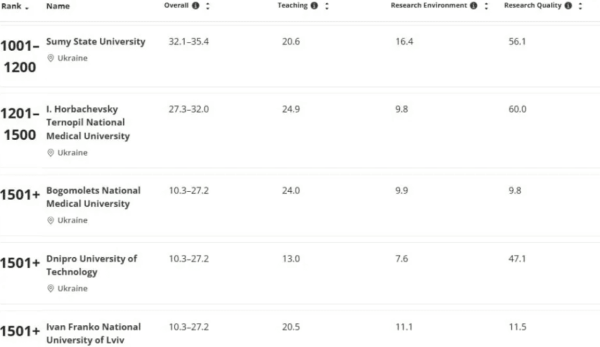 В рейтинг World University Rankings 2026 попали 22 украинских университета